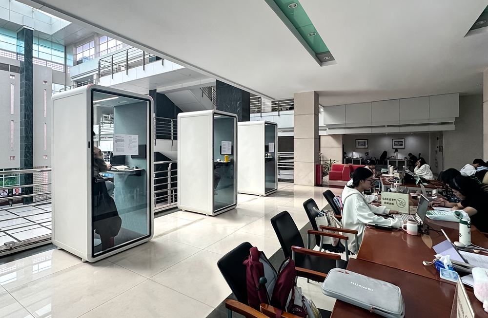 The modular nature of the Glawall Office Pod allows it to be deployed flexibly in every corner of the library—whether in the reading areas on various floors of the main building, in spacious corridors, or even in dimly lit passageways.