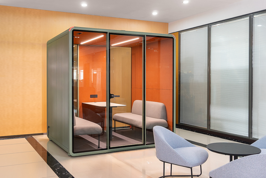 Everyone’s work style and aesthetic are unique, and the variety of color and configuration options for the acoustic pods allows you to customize a personalized office environment. The thoughtful color combinations not only enhance the overall atmosphere of the space but also improve focus and comfort during work.
