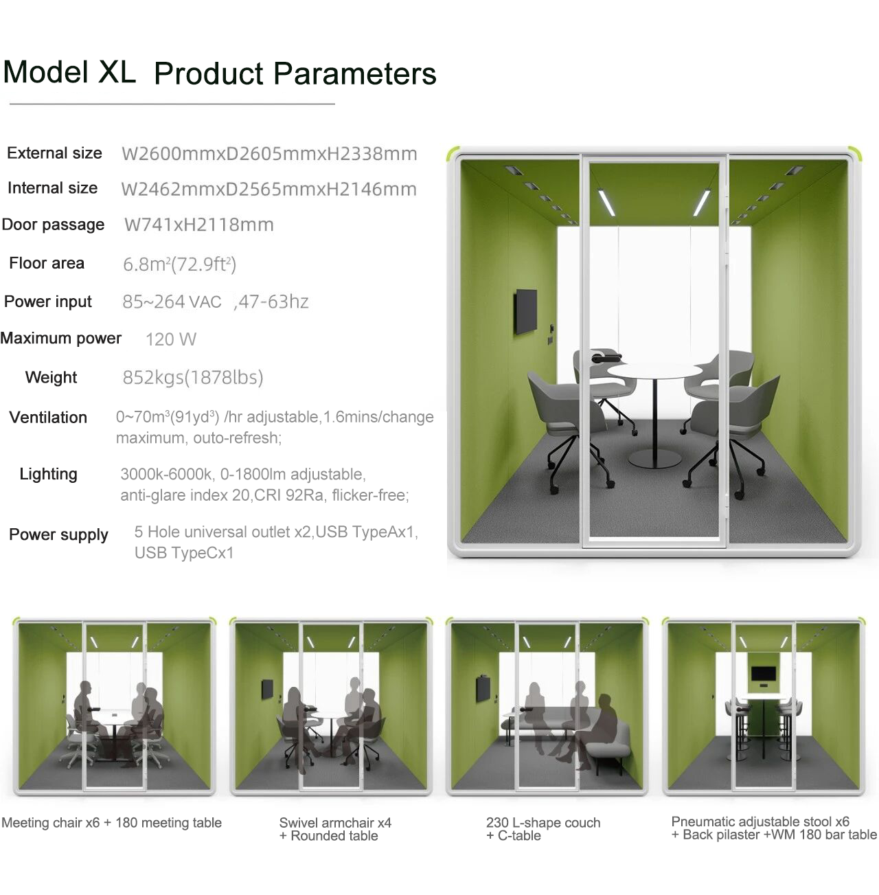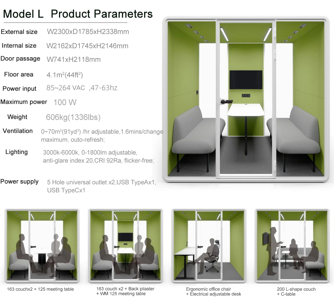 3.The soundproof pod, with its unique modular design, can be flexibly configured to meet the changing needs of various office scenarios.